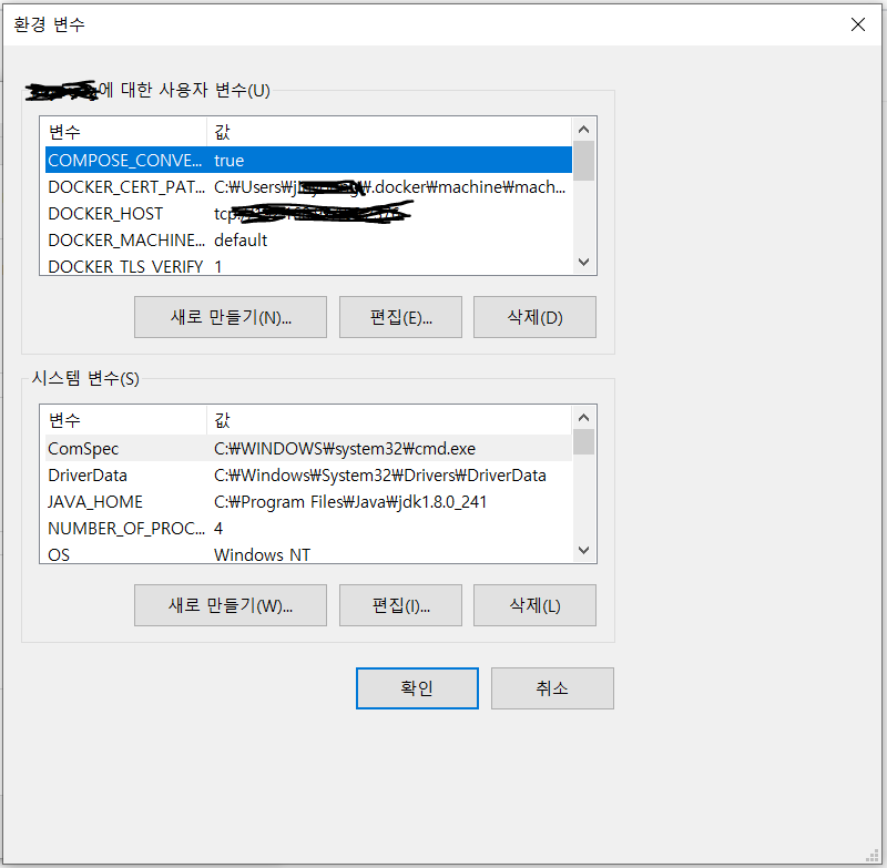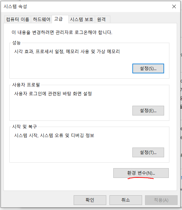 환경 변수 누르고