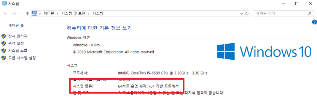 다시, 윈도우키+R 을 누르고 control system 검색